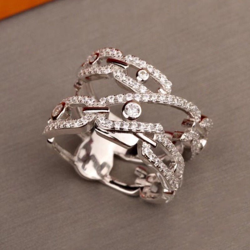 MESSIK DOUBLE ROWS RING SILVER DIAMOND