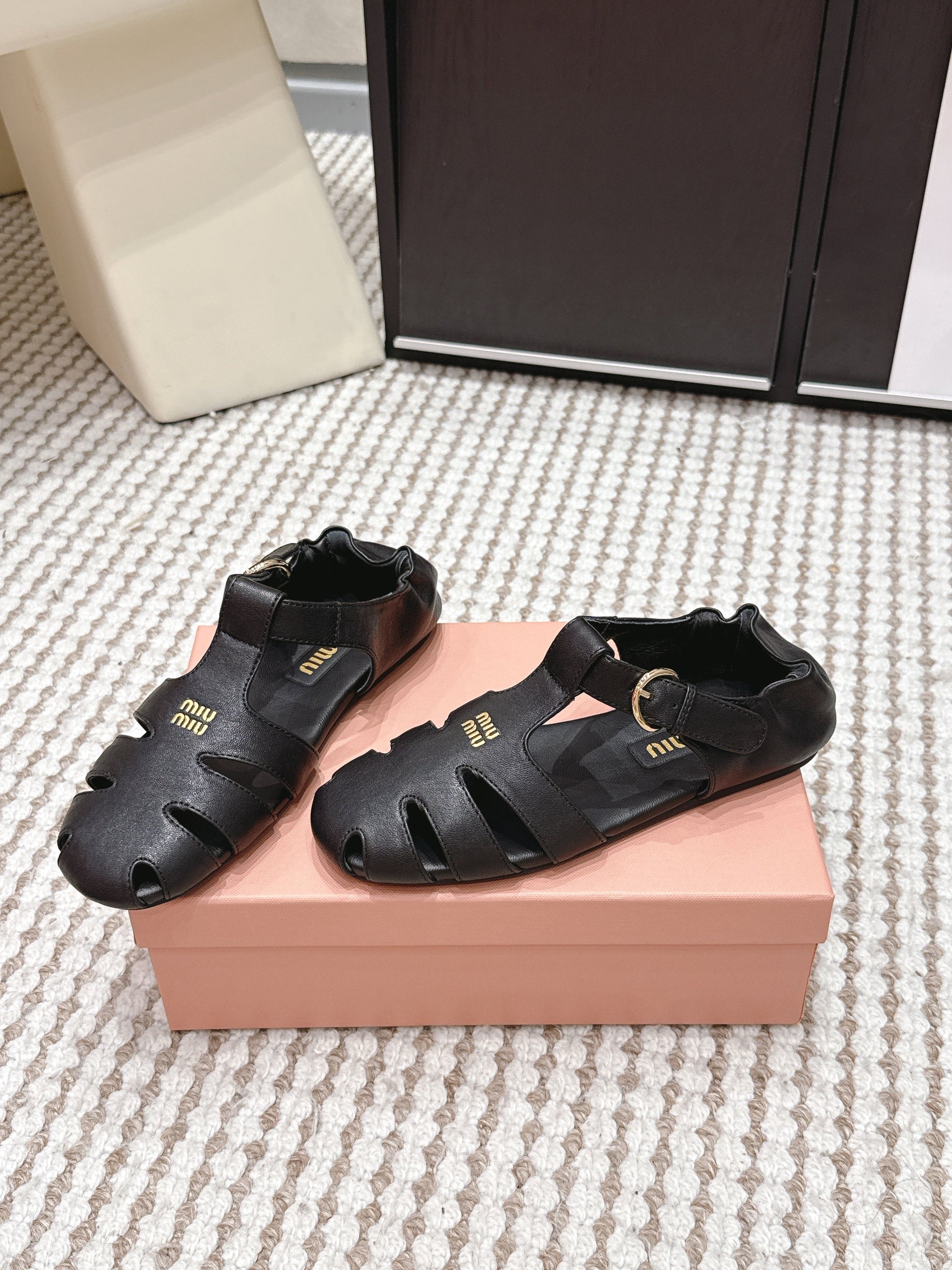 MIU 26 Roman Sandals Black Leather 632325