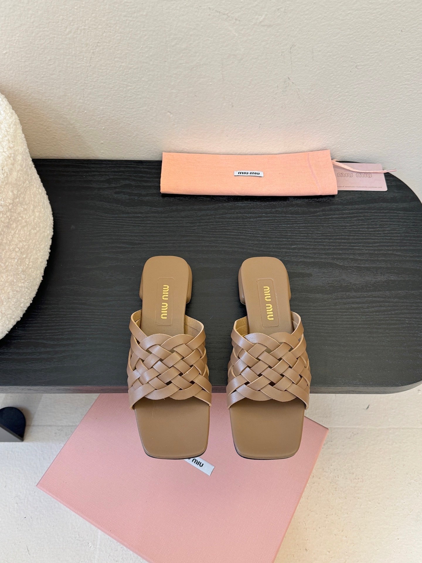 MIU 26ss Flat Sandals Brown Sheepskin 627353