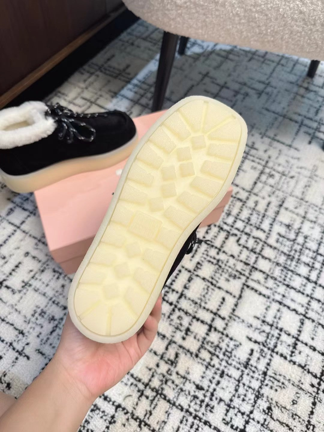 Miu Ankle Boots Black Fleece Lining Cow Suede