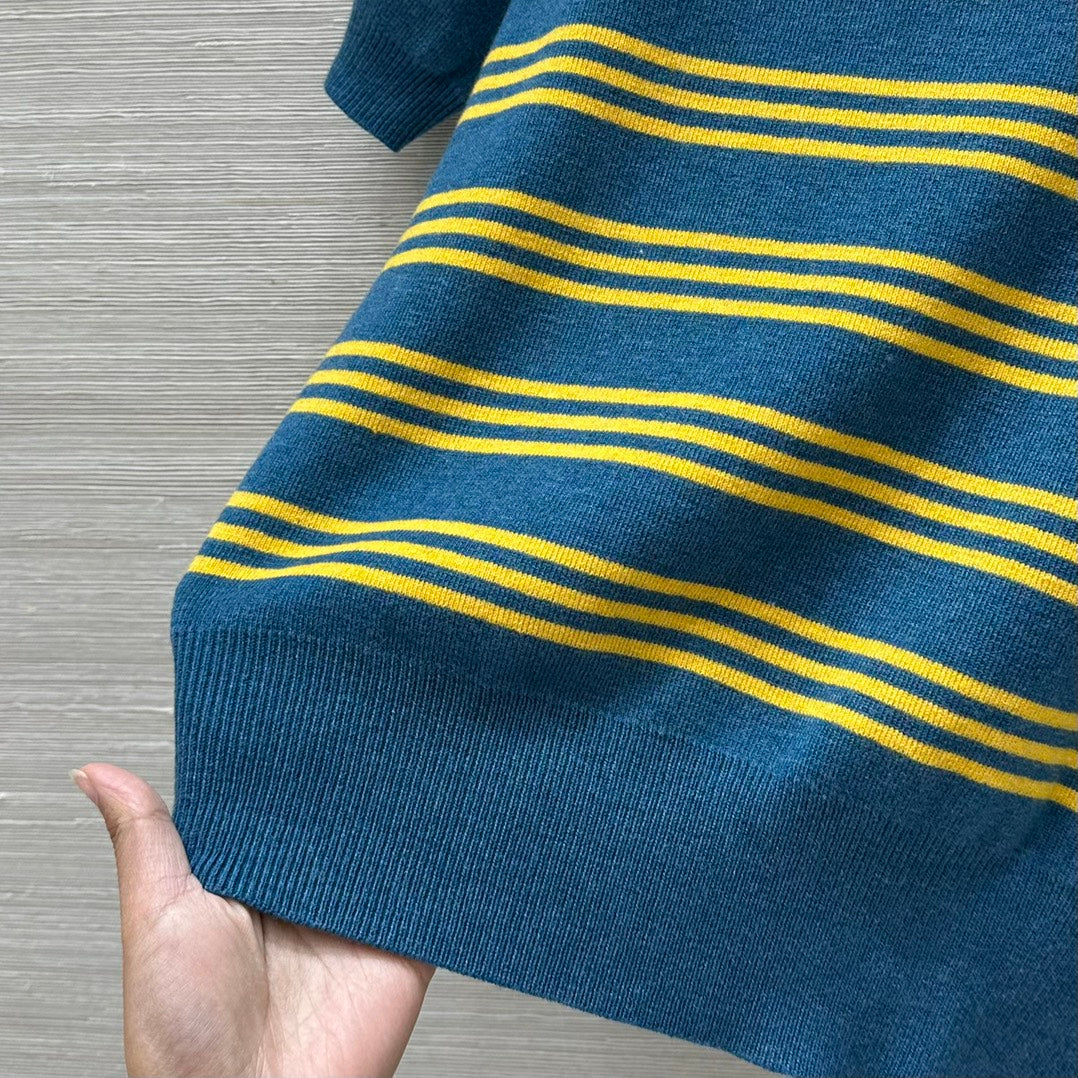 Miu Miu 25 Striped Polo Top Blue Yellow Wool