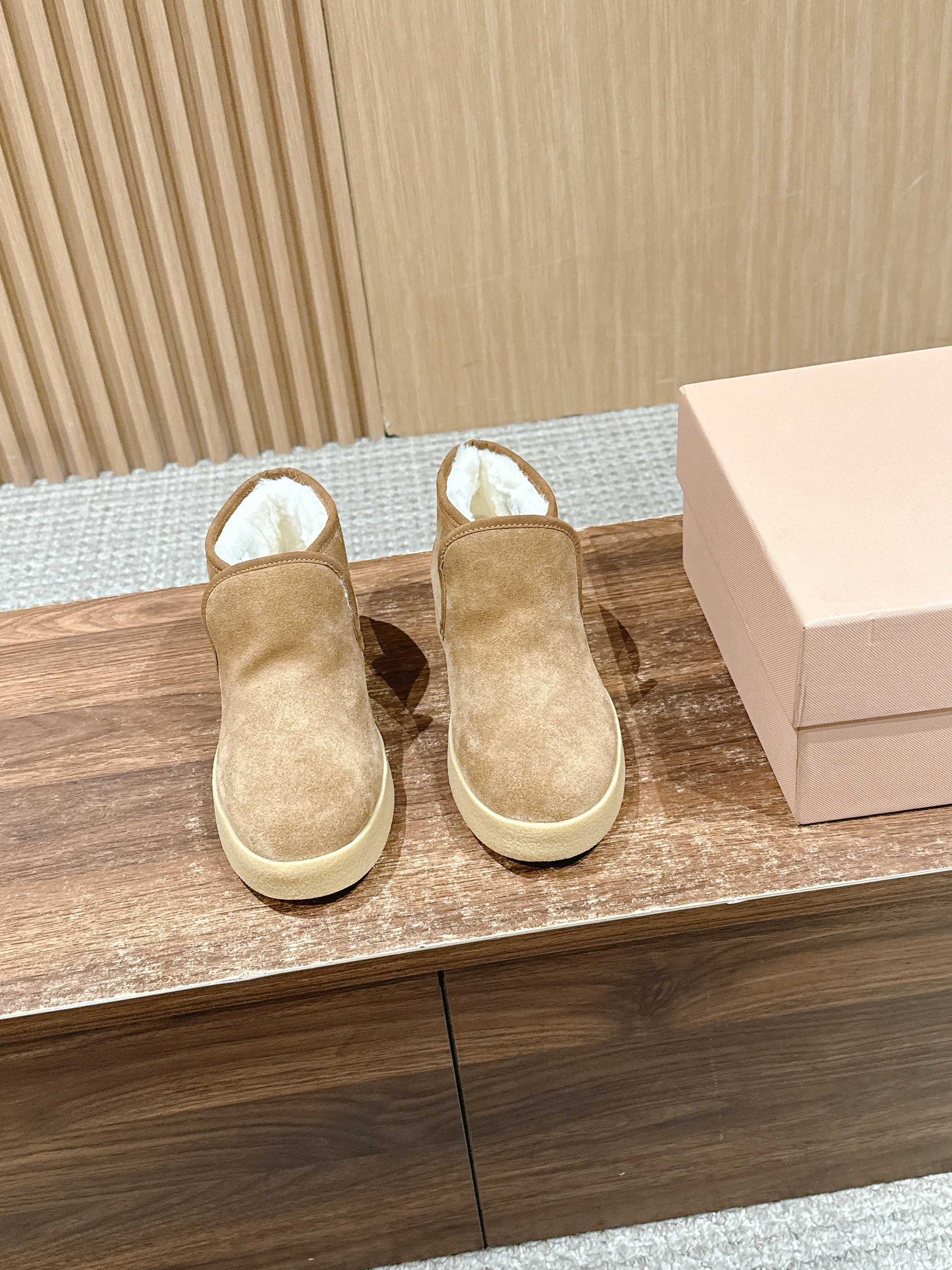 Miumiu 25 Slip-on Boot Light Brown Mix White Suede Wool 553706