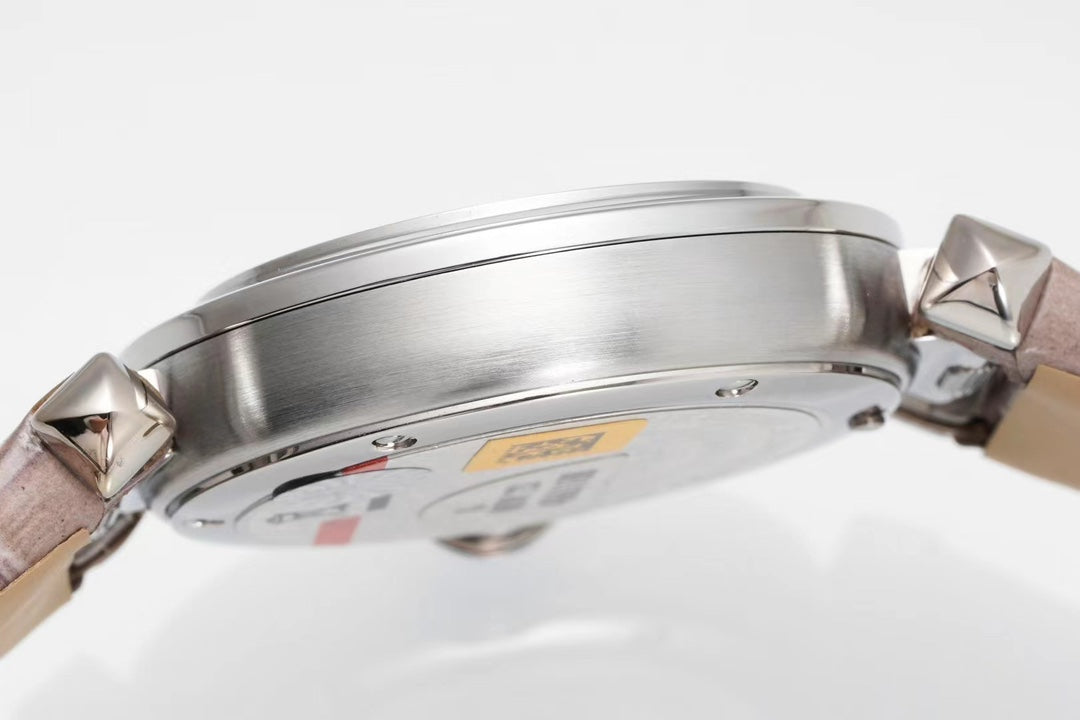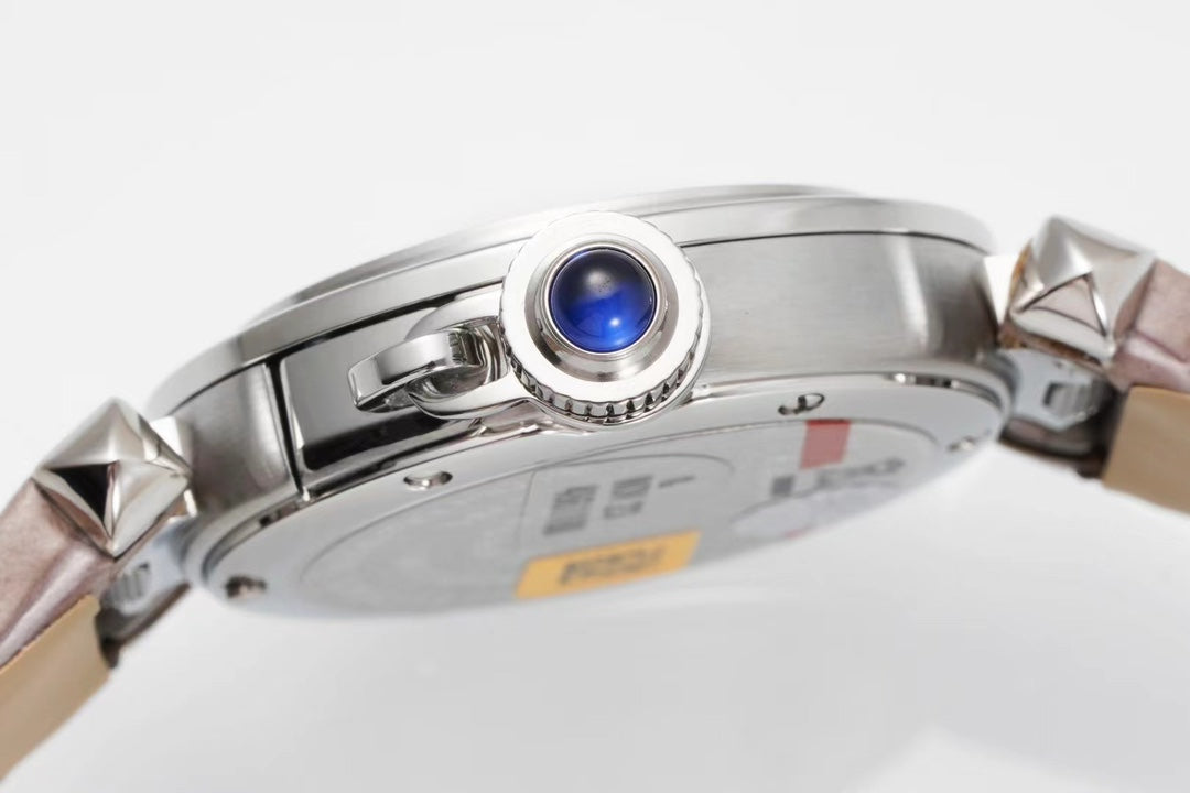pasha 30mm quartz stainless steel pink dial light brown leather