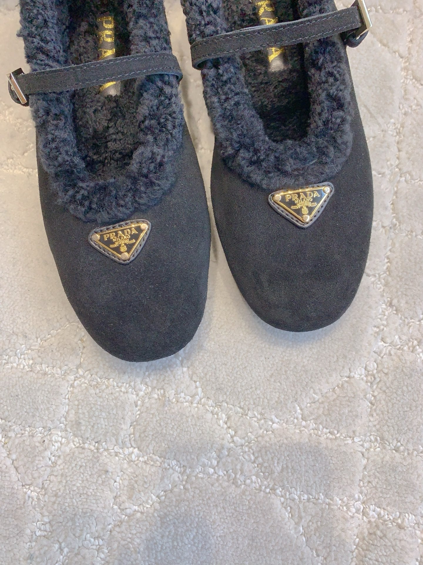 Pra 2025 Fur-lined Flat Black Suede Wool 557120