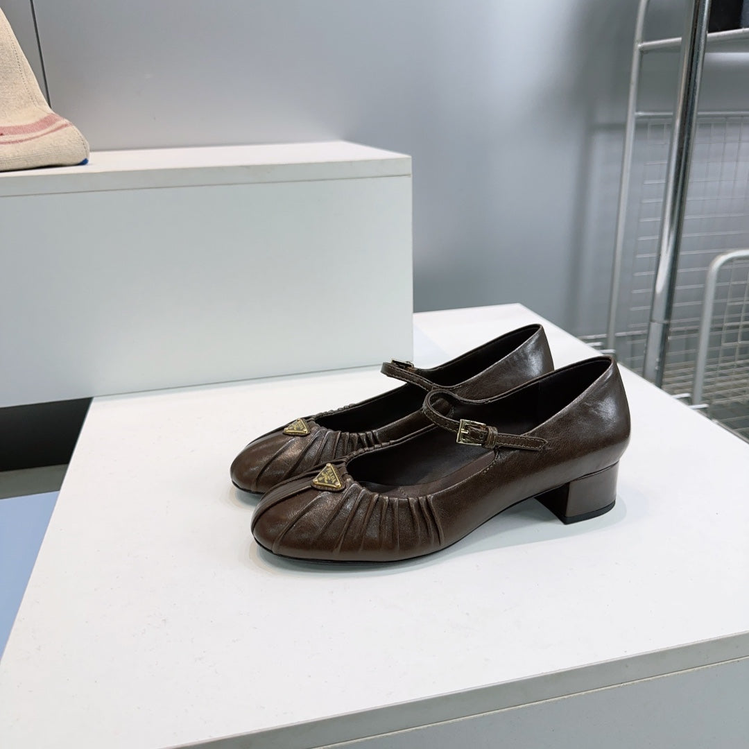 PRA 26S Mary Jane Chunky Heel Dark Chocolate Sheepskin 628705