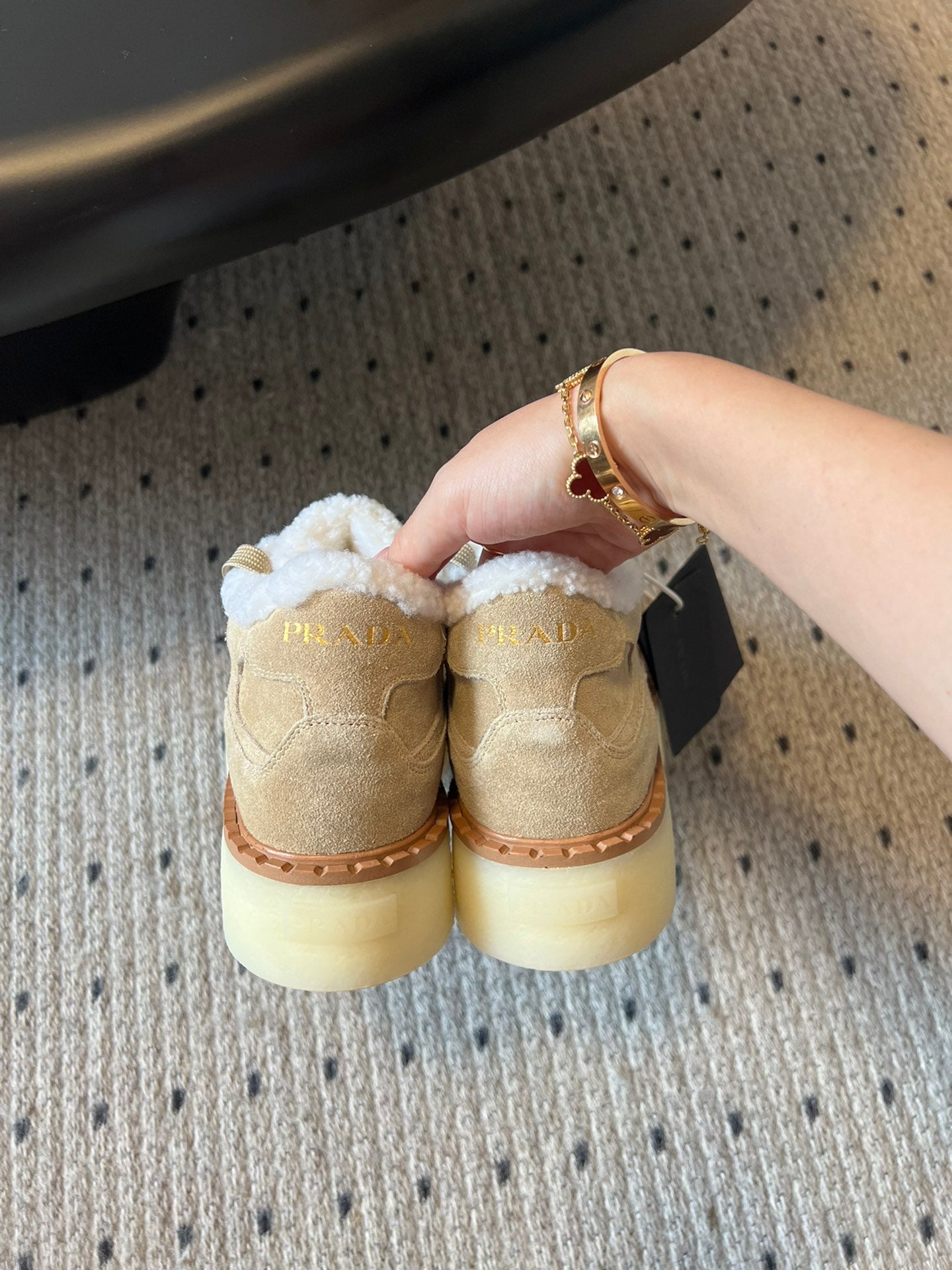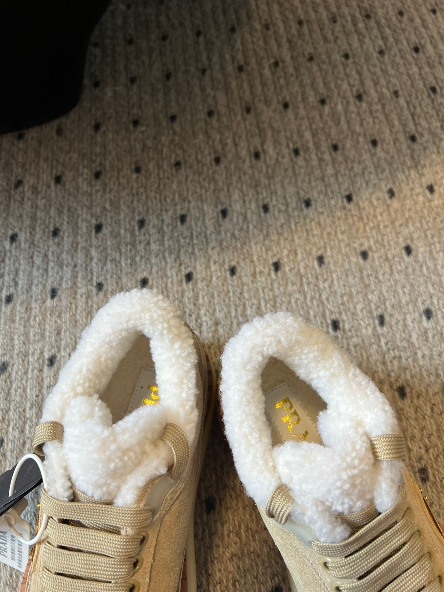 Prada 25s Mid-Top Sneaker Beige Suede And Wool 538436