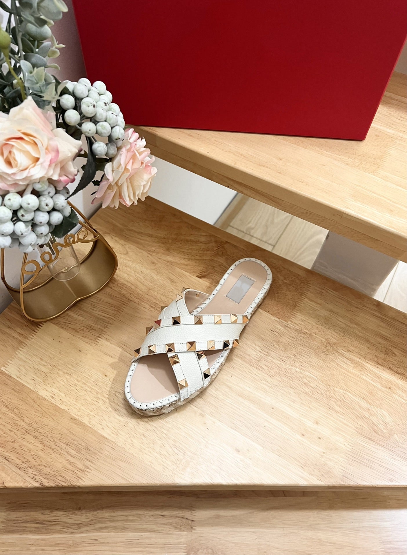 Rockstud Crisscross Espadrilles 20mm Sandal Wedges White