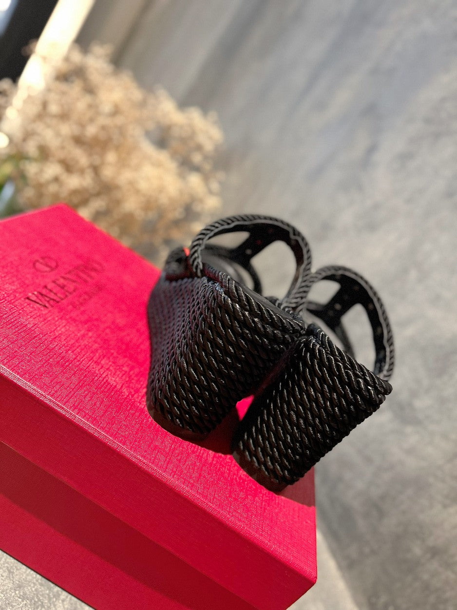 ROCKSTUD LAMINATED NAPPA WEDGE SANDAL 100 MM BLACK