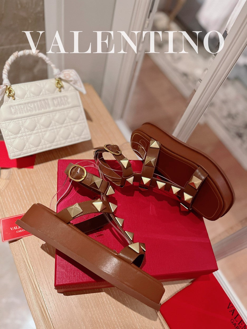ROCKSTUD PLATFORM SANDALS IN BRONZE BROWN CALFSKIN