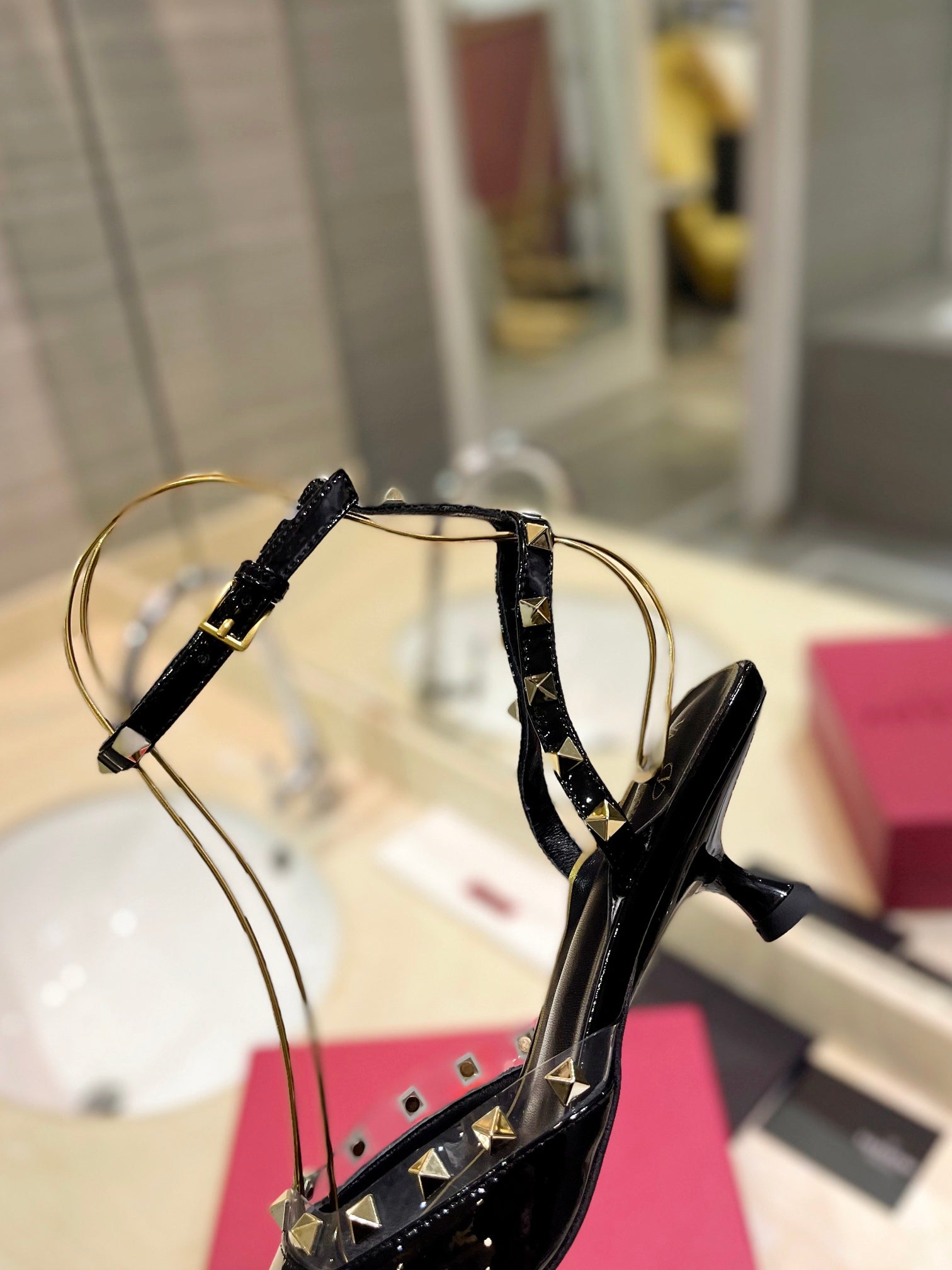 ROCKSTUD SLINGBACK IN BLACK CALFSKIN 50MM