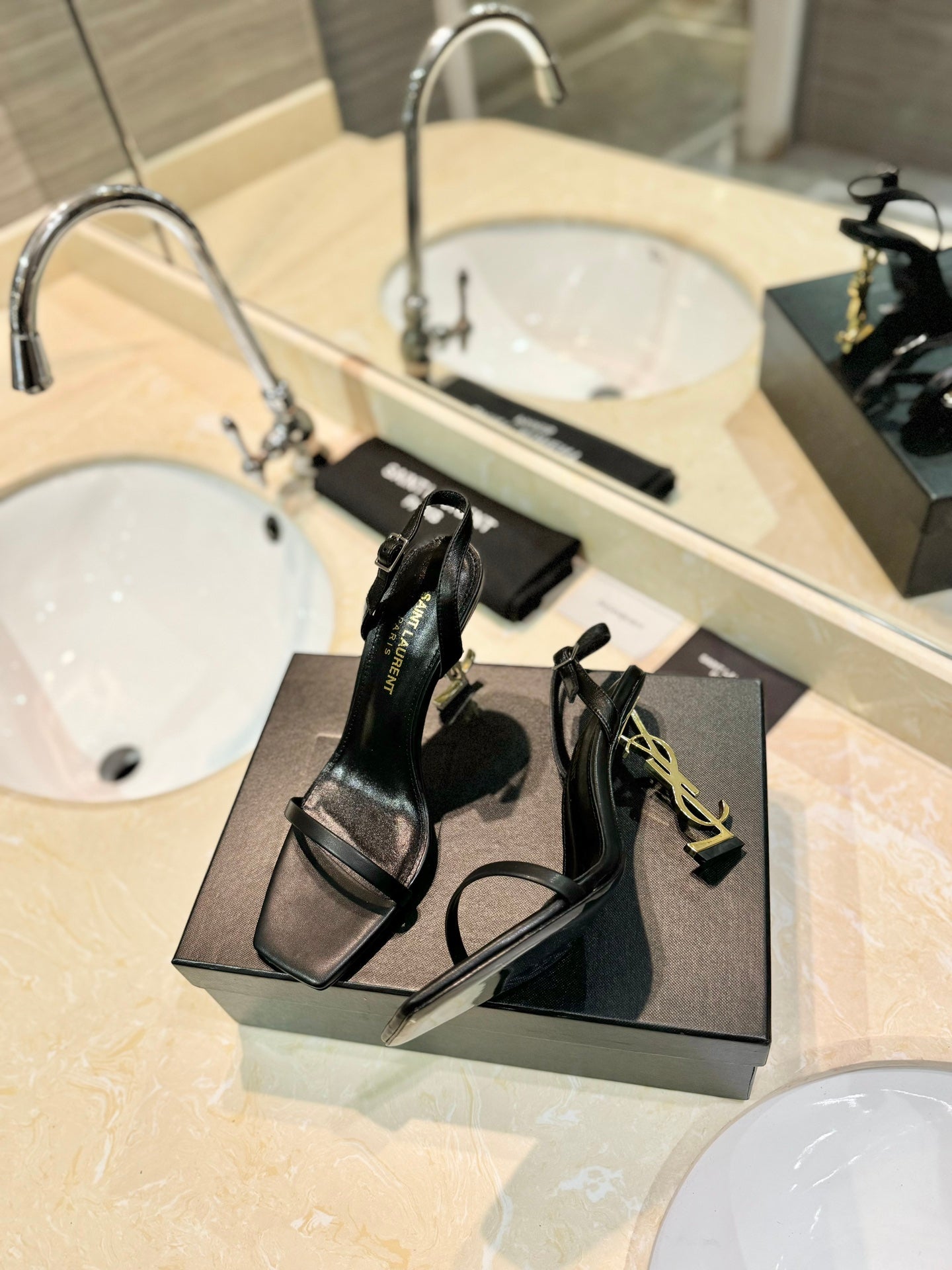 SL OPYUM SANDALS 80 BLACK AND GOLD CALFSKIN