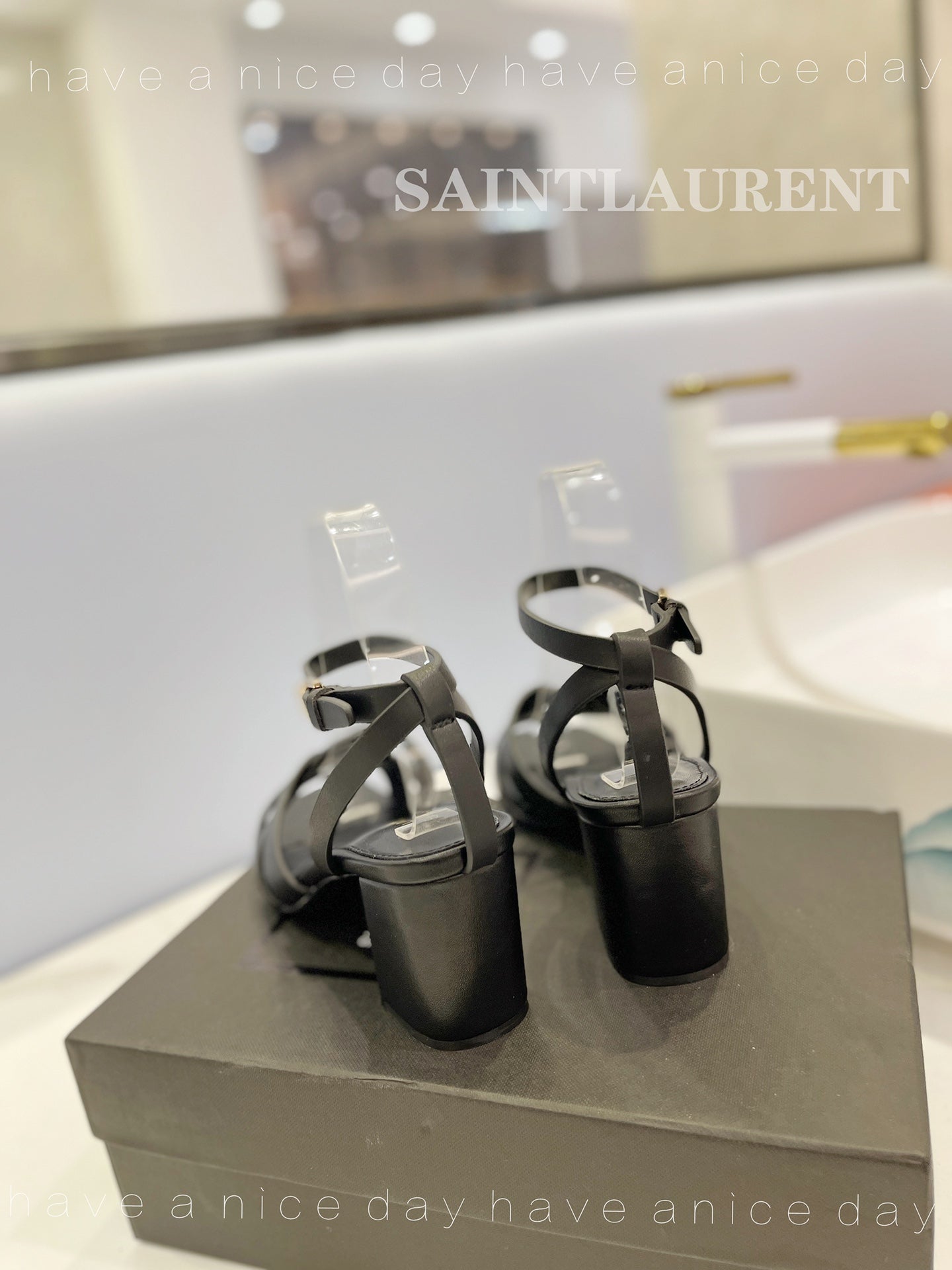 SL TRIBUTE SANDAL BLACK CALFSKIN
