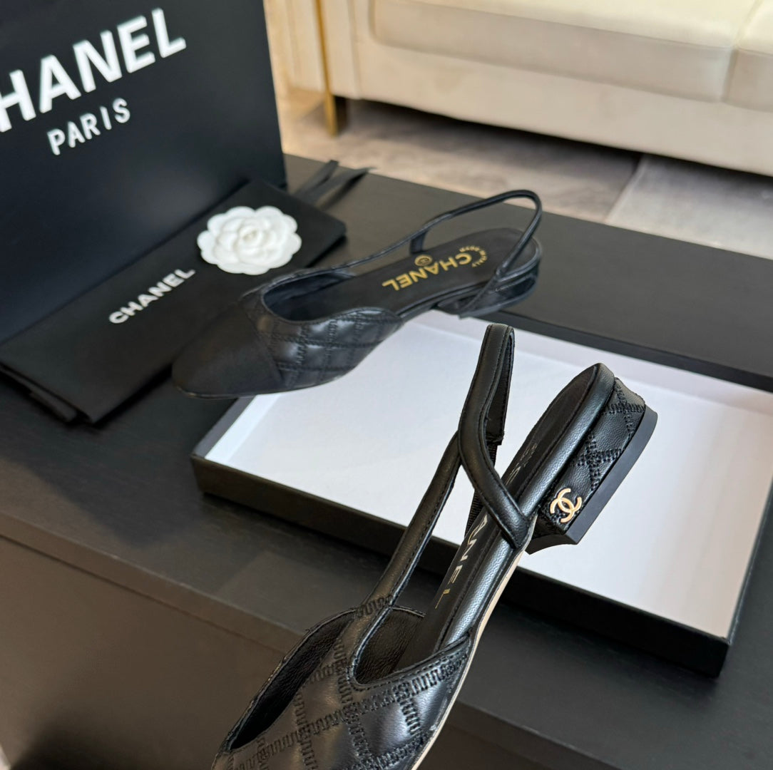 slingbacks flat black calfskin embroidery black grosgrain