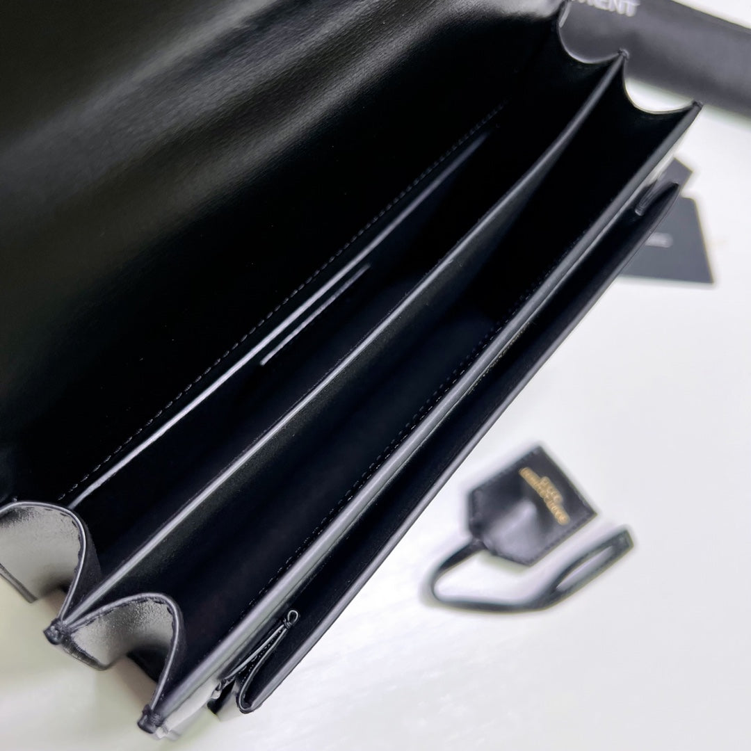 SUNSET MEDIUM 22 IN BLACK CALFSKIN GOLD HARDWARE