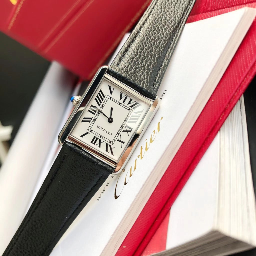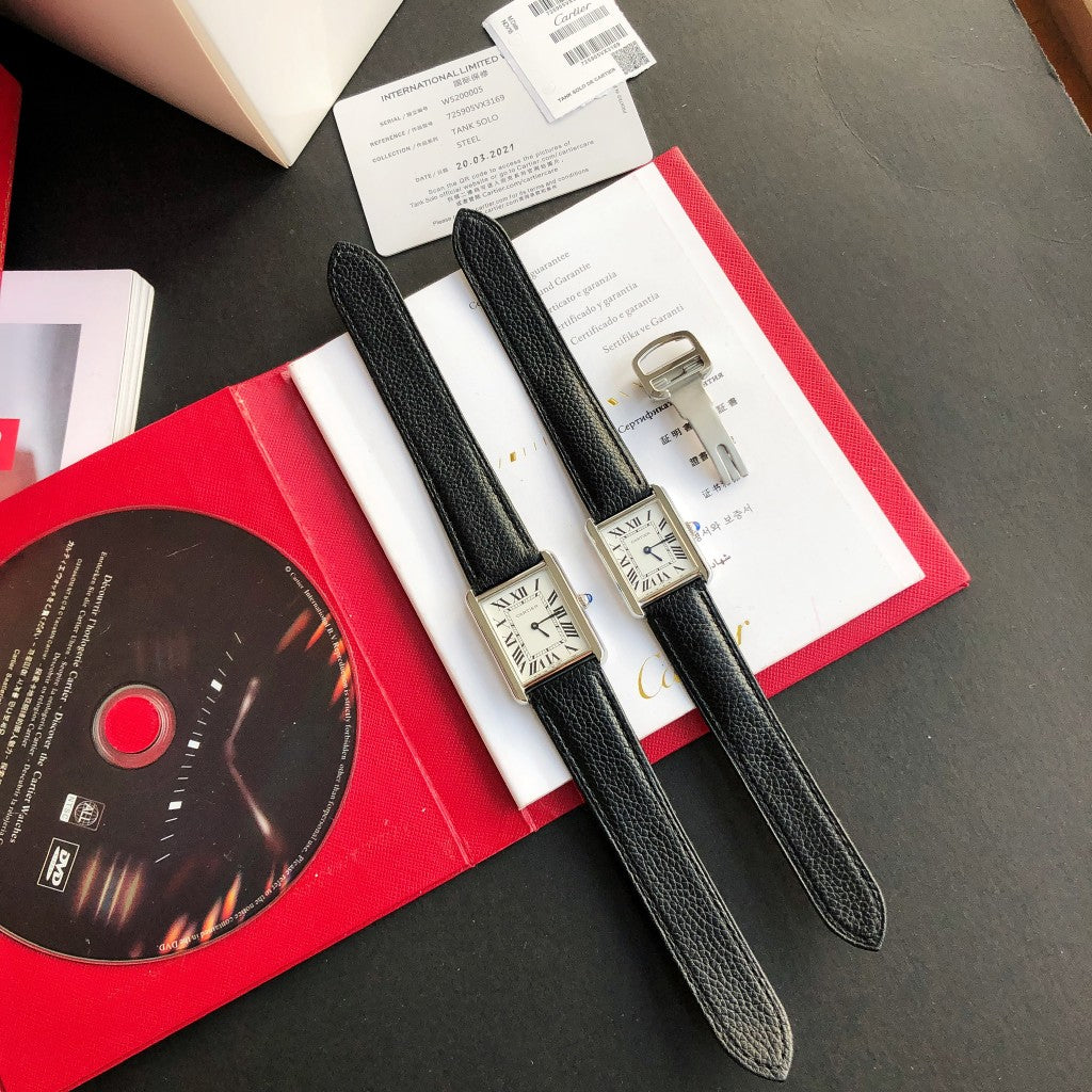 TANK SOLO SILVER CASE BLACK CALFSKIN LEATHER