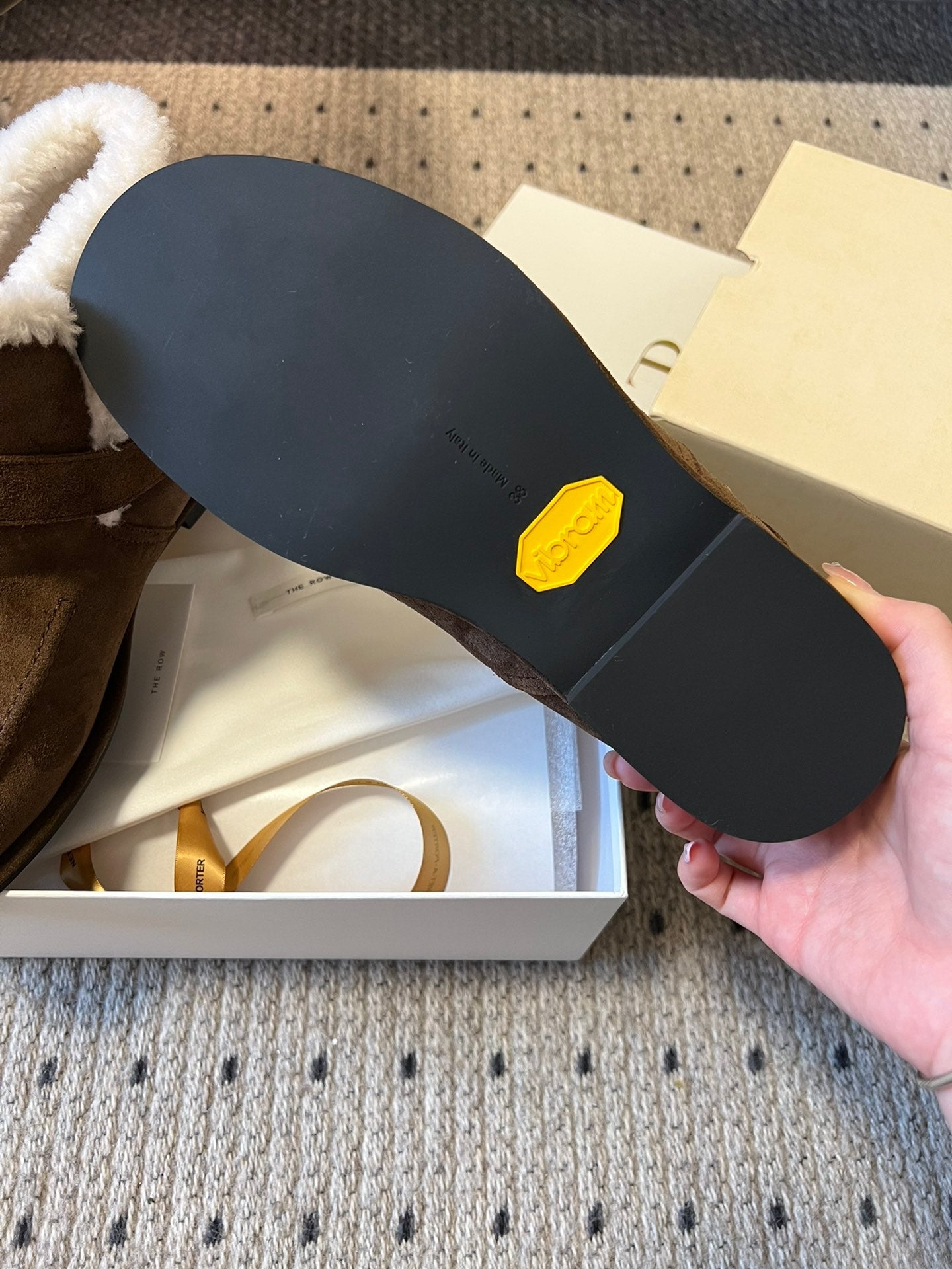 The Row 2025 Ankle Boot Brown White Suede Wool 561621