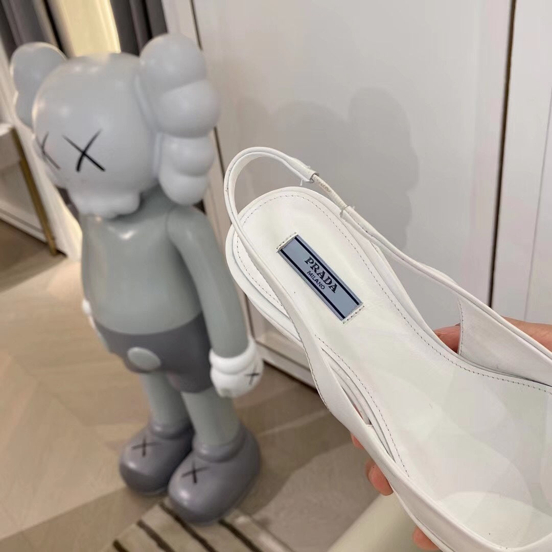 TRIANGLE LOGO SLINGBACK PUMPS IN WHITE GLOSSY CALFSKIN