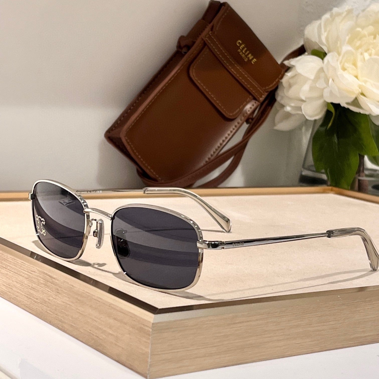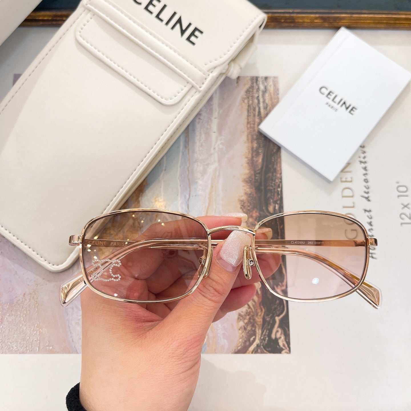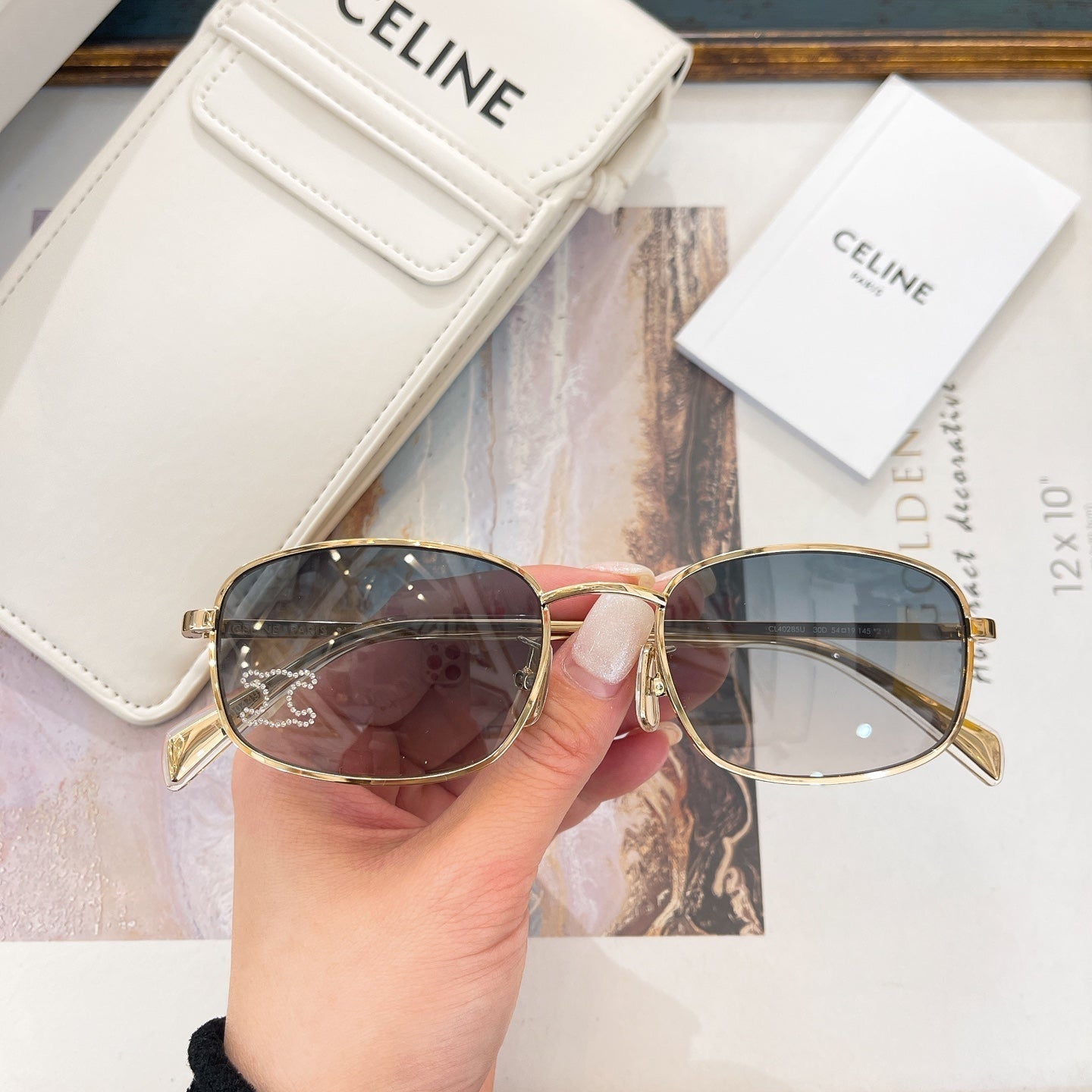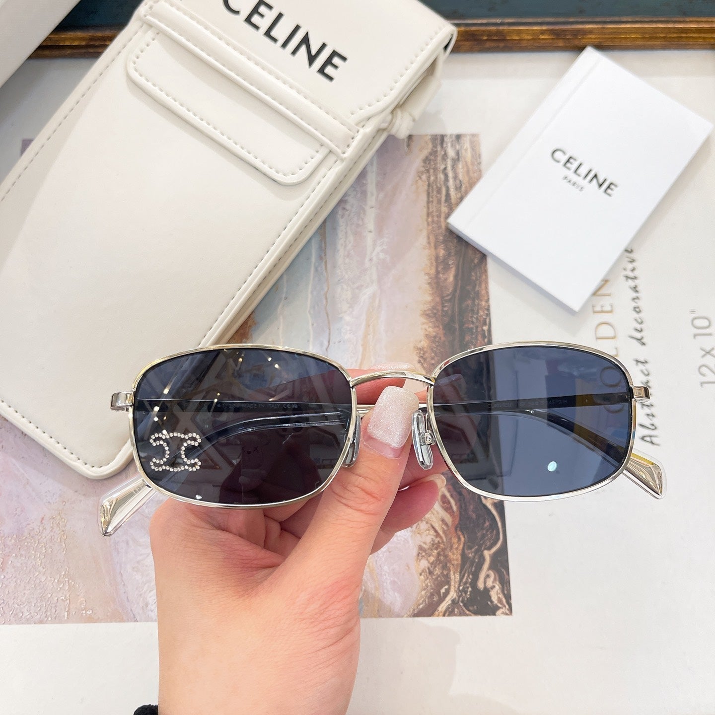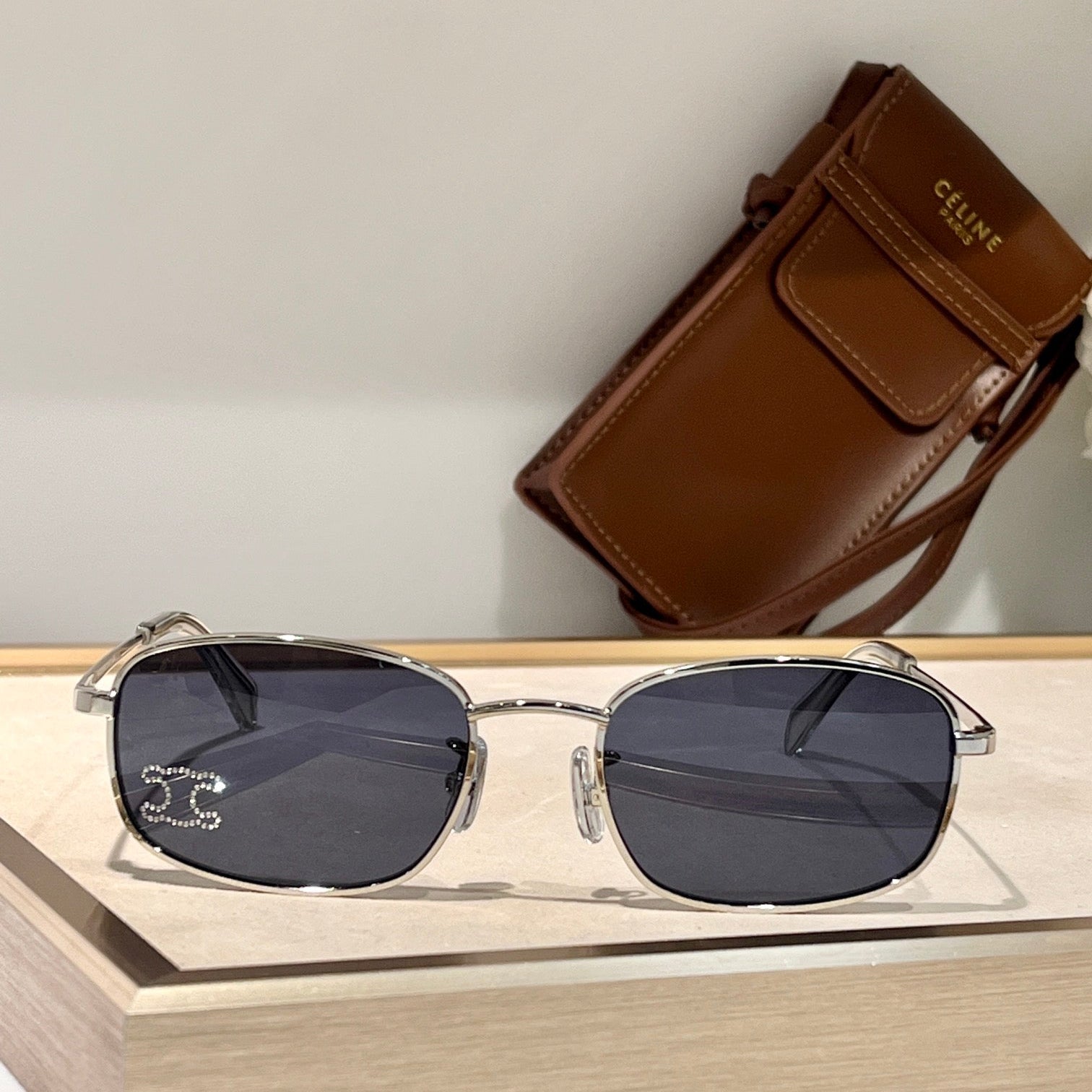TRIOMPHE RHINESTONE SUNGLASS CL40285U IN METAL WITH CRYSTALS