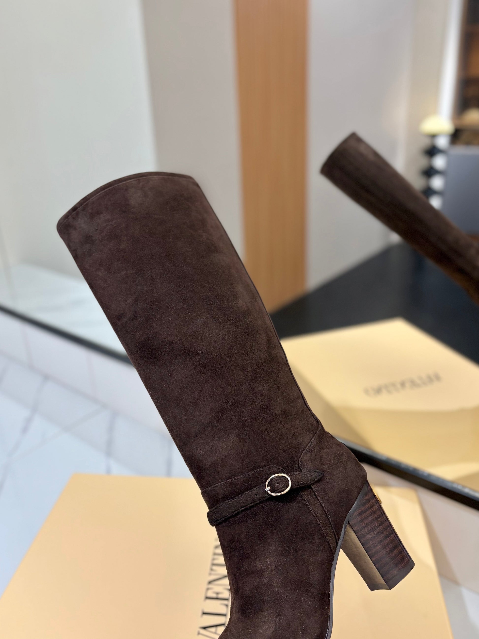 Valentino 2025 Pattie High Boot Dark Brown Suede 560739