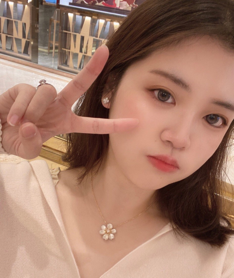VCA Rose White Mop Necklace Gold 5 Diamond