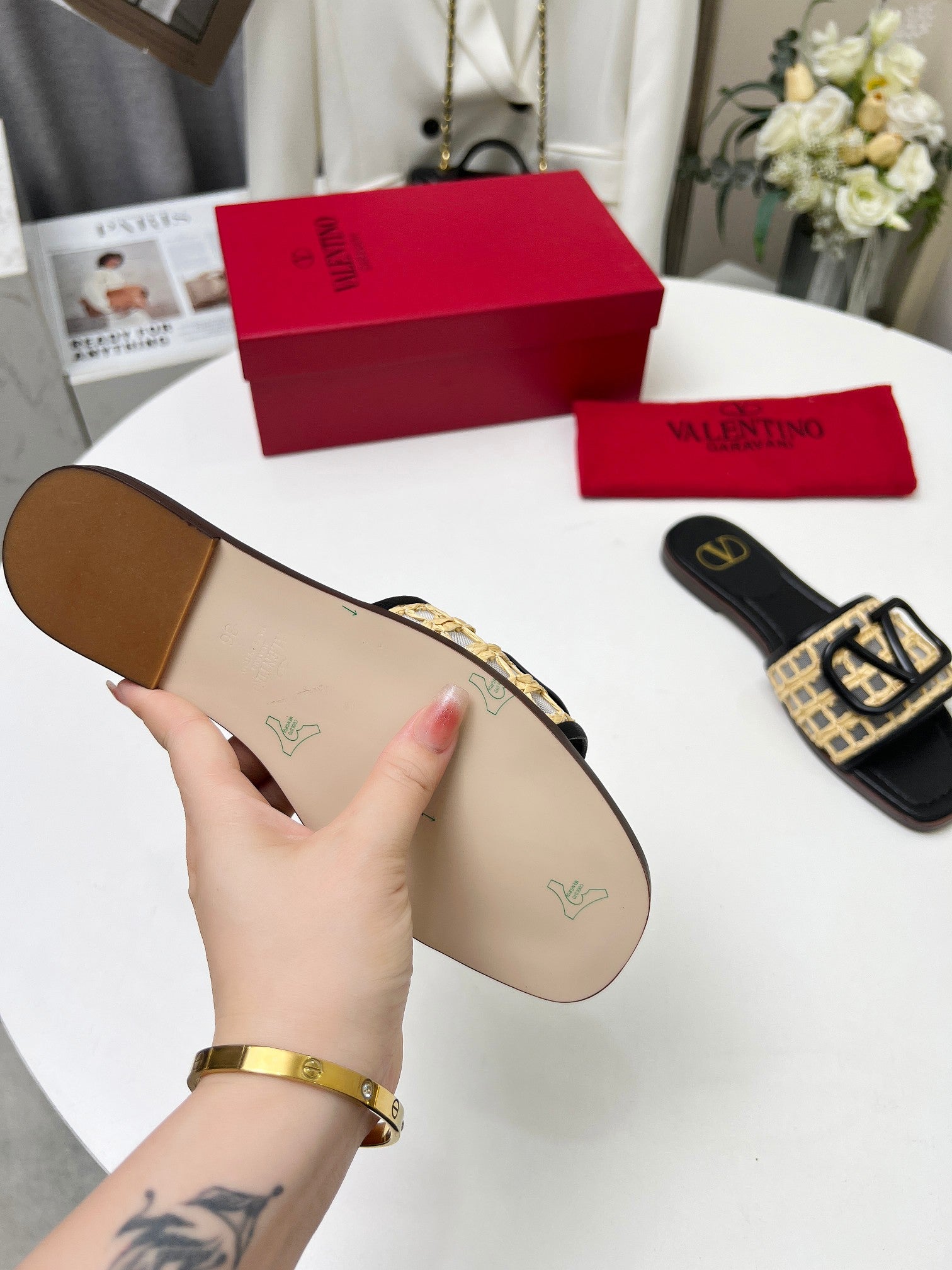 - Material: Raffia, Calfskin