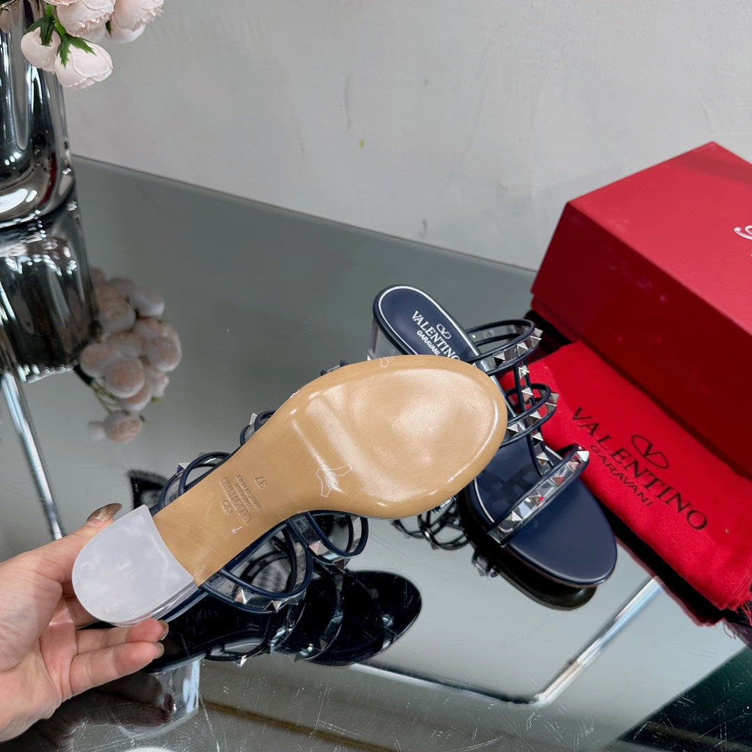 VT 25 Rockstud Sandals 65mm Navy Blue PVC Sheepskin