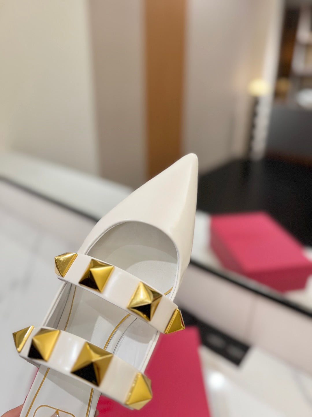 VT Rockstud Mule White Gold Cowhide